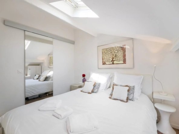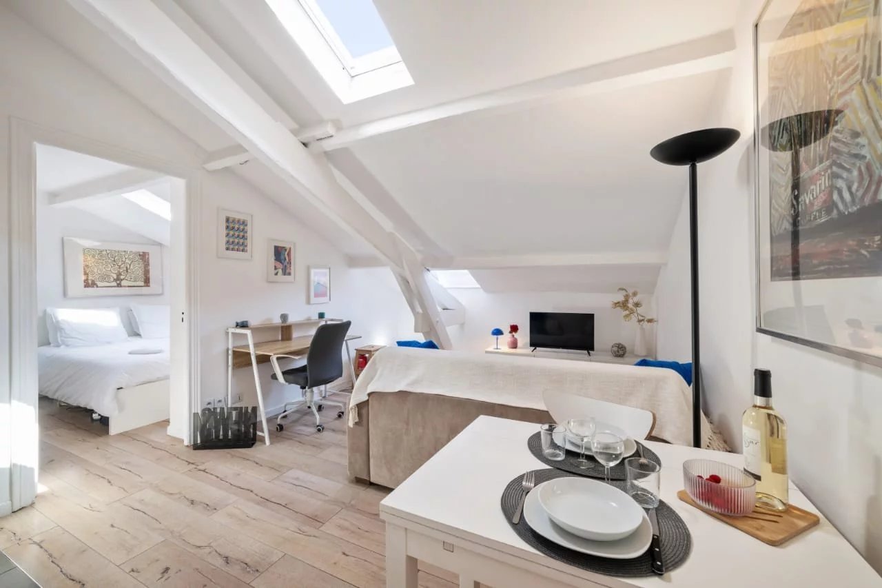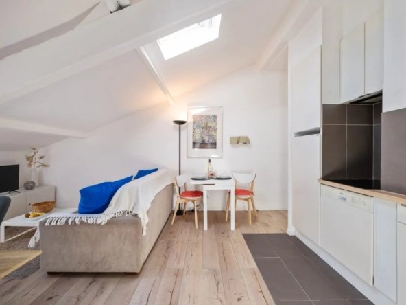 Découvrez ce magnifique deux pièces mansardé, idéalement situé au dernier étage d’un immeuble avec ascenseur, côté cour, offrant un calme absolu tout en étant à deux pas du marché emblématique de la Libération.