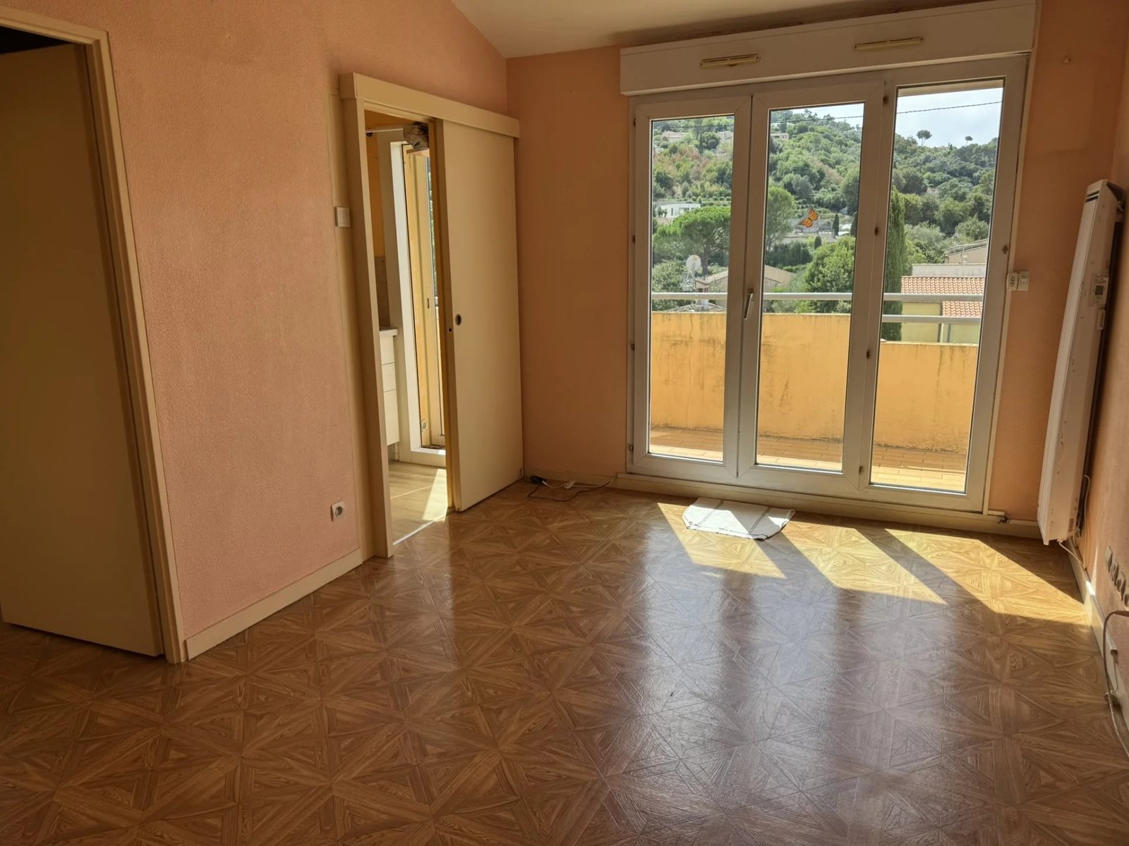 L’espace de vie s’ouvre sur une agréable terrasse ensoleillée, tandis que la chambre bénéficie d’un balcon privatif côté calme. Vous profiterez également d’une vue dégagée sur les collines.