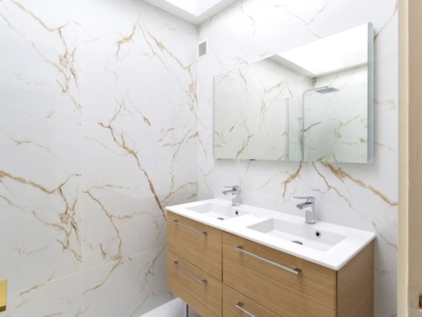 Il se compose d’un hall d’entrée, d’un séjour lumineux avec cheminée, d’une salle à manger spacieuse, d’une cuisine indépendante, de trois chambres, de deux salles d’eau ou de bains, de toilettes séparées et d’un dressing.