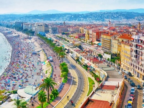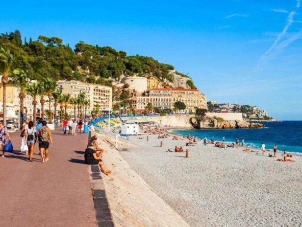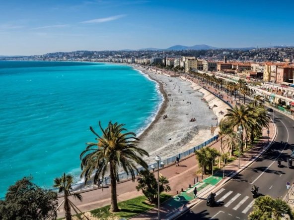 Appartement 4 pièces vue mer dans un immeuble Art Déco, emblématique et classé aux Monuments Historiques sur la très célèbre Promenade des Anglais à Nice.