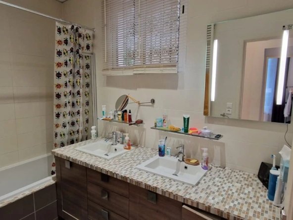 Quartier avec escaliers mais pleins de charme et de tranquillité, appartement avec un aperçu vue mer, très peu de charges, on a l’impression de vivre dans une véritable maison, entièrement climatisé, chaudière à gaz neuve, wc suspendu, sol en marbre blanc, beaux volumes des pièces…