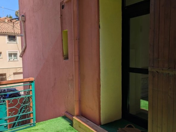 un accès secondaire privatif vous mène à un petit jardin de 27 m²et une coursive pouvant accueillir une moto ou un petit véhicule électrique.