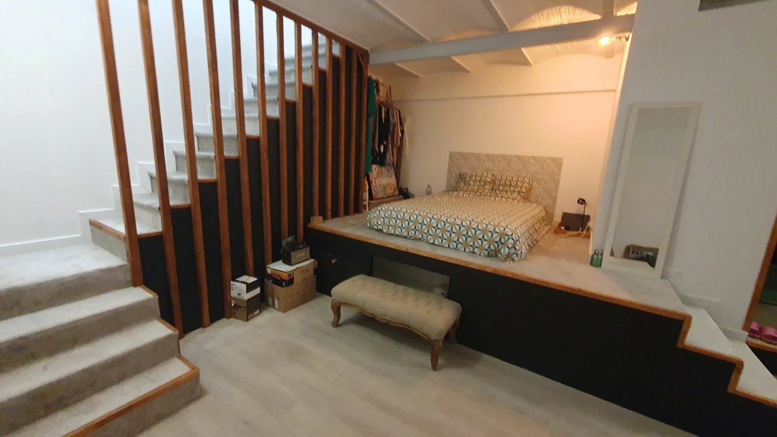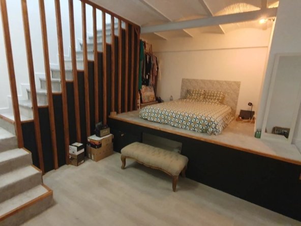 L’appartement révèle un espace de vie lumineux, sublimé par de belles hauteurs sous plafond de 3 mètres au cachet indéniable : murs en pierre apparente, cuisine américaine aménagée. Un lieu de vie chaleureux, alliant charme de l’ancien et finitions contemporaines.