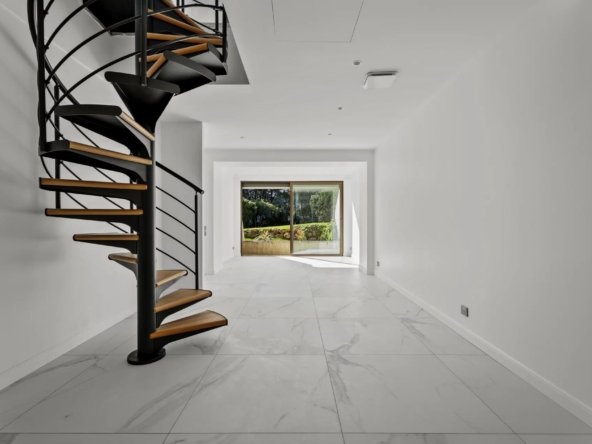 Ce jardin est accessible depuis les deux étages de l’appartement.