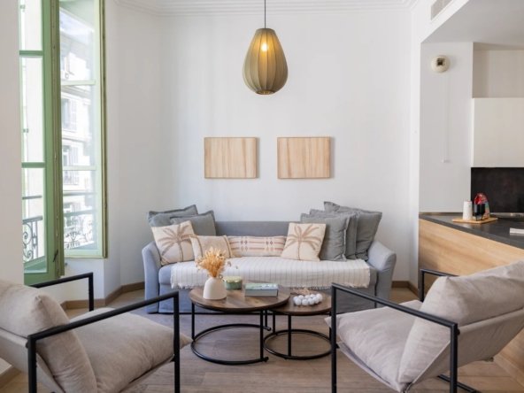 Dans un superbe immeuble niçois d’époque du XIXᵉ siècle, au cœur du centre-ville de Nice, à quelques pas de l’avenue Jean Médecin et du tramway, ce bien d’exception de 112,40 m² se situe au deuxième étage d’une copropriété de standing, avec ascenseur et accès PMR.