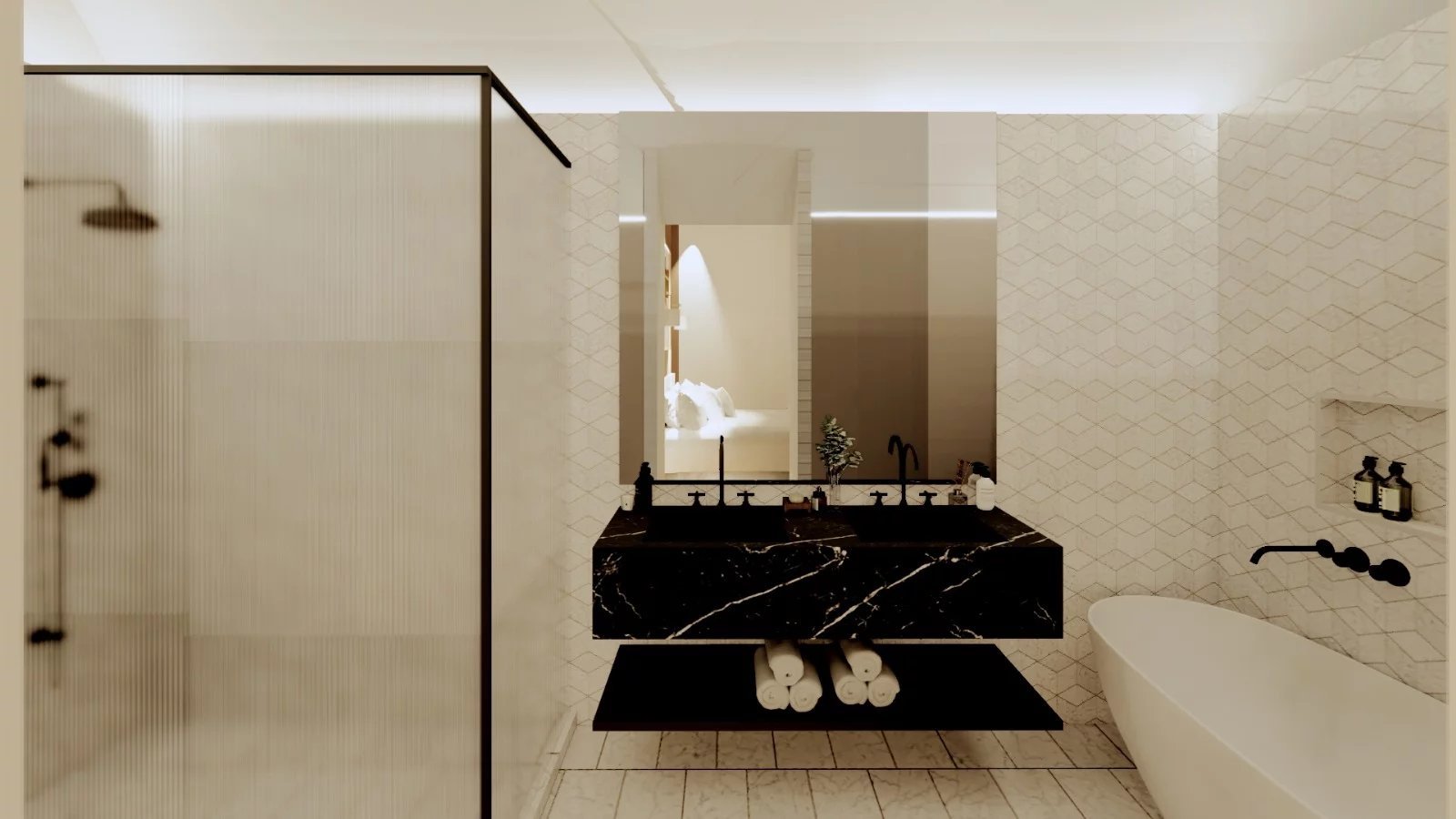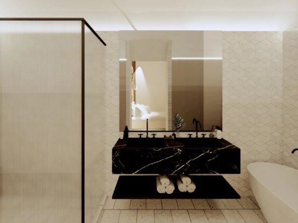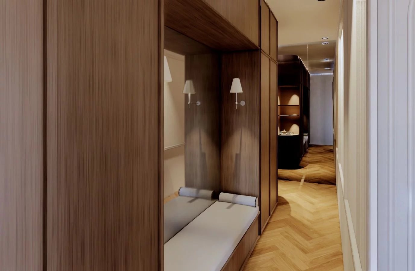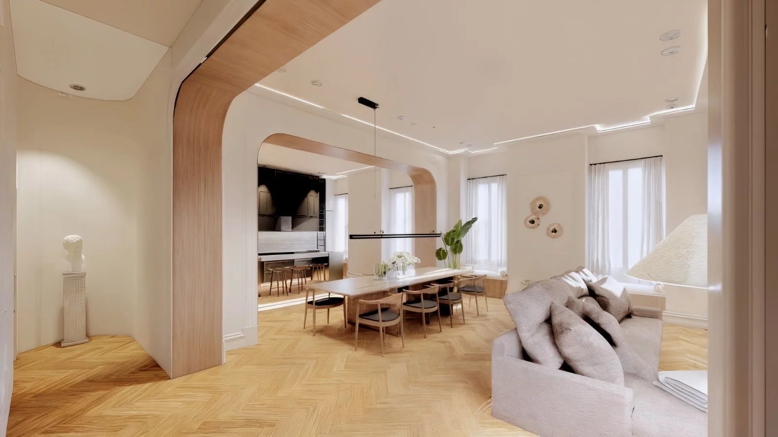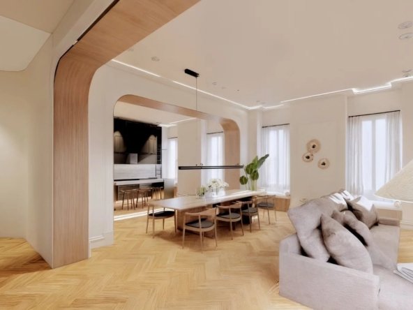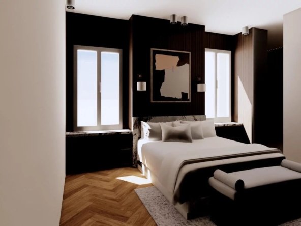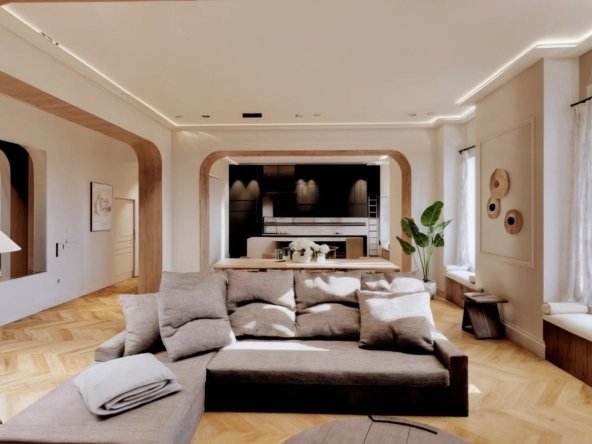 Marbre, bois massif et matériaux choisis composent un décor sobre et précieux. Une chambre de Maître en suite ainsi qu’une chambre en suite complètent l’ensemble, préservant intimité et quiétude. Actuellement en cours de rénovation intégrale, l’appartement sera livré clé en main.
