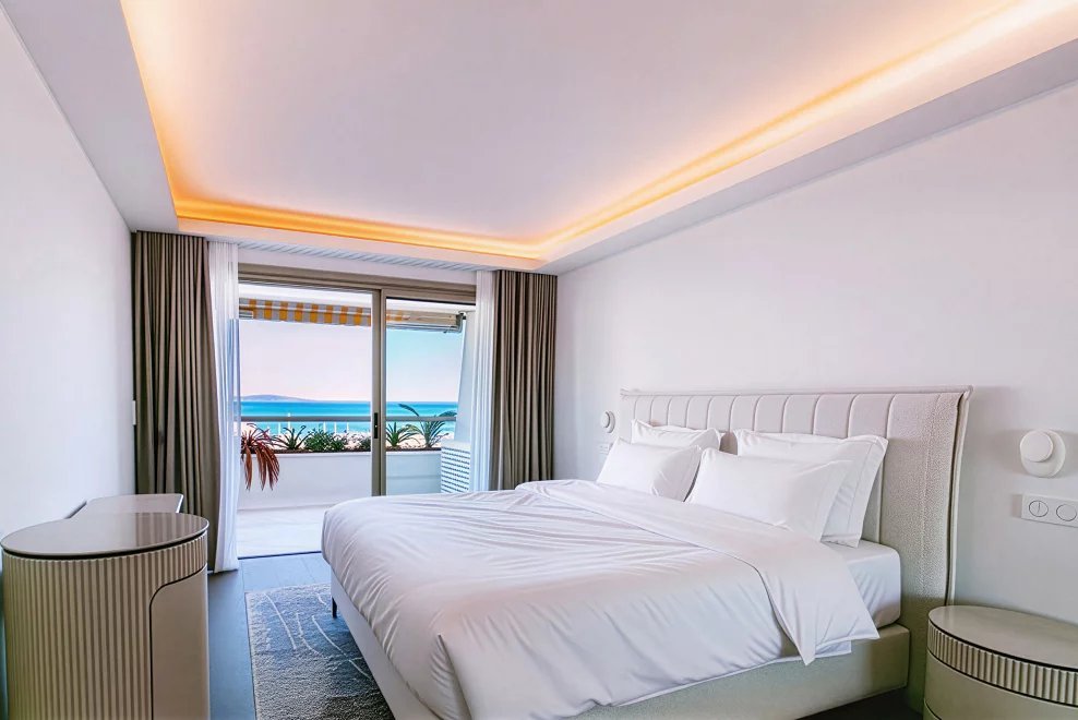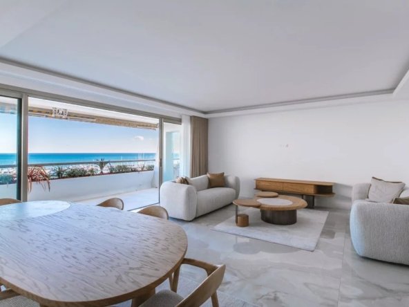 Au sein de la prestigieuse résidence Commodore, idéalement située en front de mer et face à la Marina, dans un environnement sécurisé avec gardiens et service de conciergerie, découvrez ce remarquable appartement 3 pièces de 90 m², situé au 5ᵉ étage, entièrement rénové avec des prestations de qualité et doté d’une climatisation intégrale.