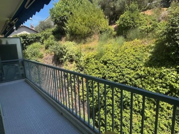 Traversant et lumineux, il offre un fort potentiel de rénovation. Le séjour s’ouvre sur une agréable terrasse exposée sud-ouest, offrant une vue panoramique exceptionnelle sur la ville et la mer. À l’arrière, un large balcon donne sur un écrin de verdure, idéal pour profiter du calme.