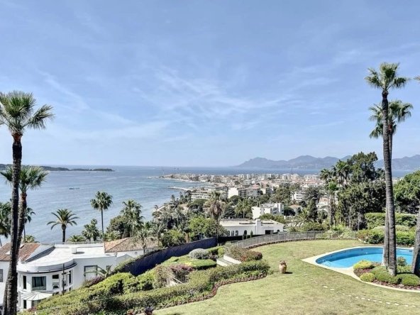 Une terrasse en bois exotique, un jacuzzi, une cuisine d’été couverte, un salon d’été avec pergola, le tout vous offrant une vue époustouflante sur la baie de Cannes jusqu’aux iles de Lérins et une vue féérique sur les lumières de la ville.