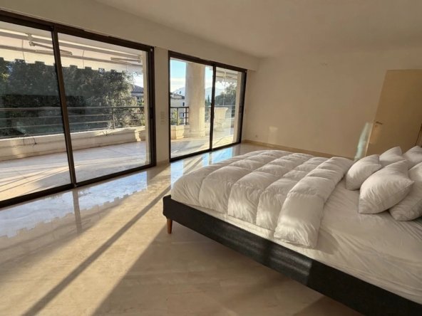 L’ensemble s’ouvre sur une magnifique terrasse de 120 m², majoritairement exposée plein Sud et offre une vue dégagée et un aperçu mer.