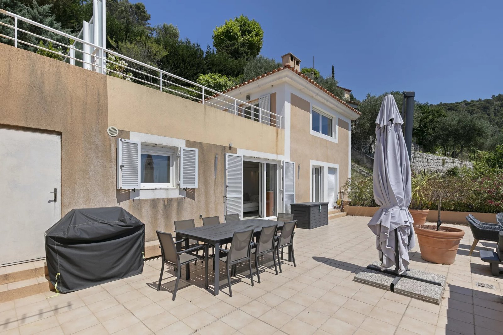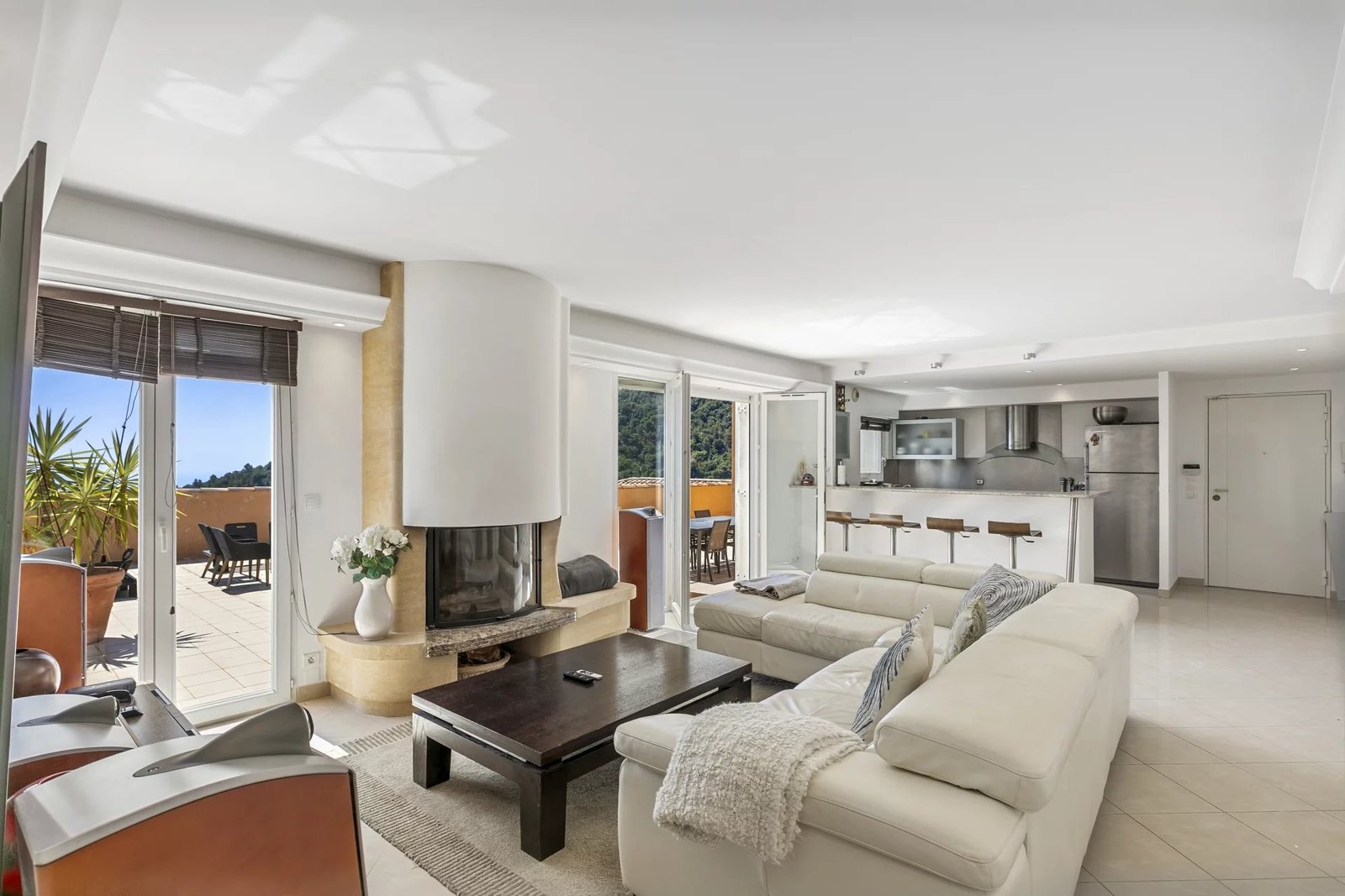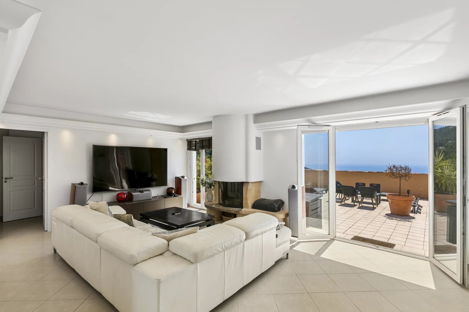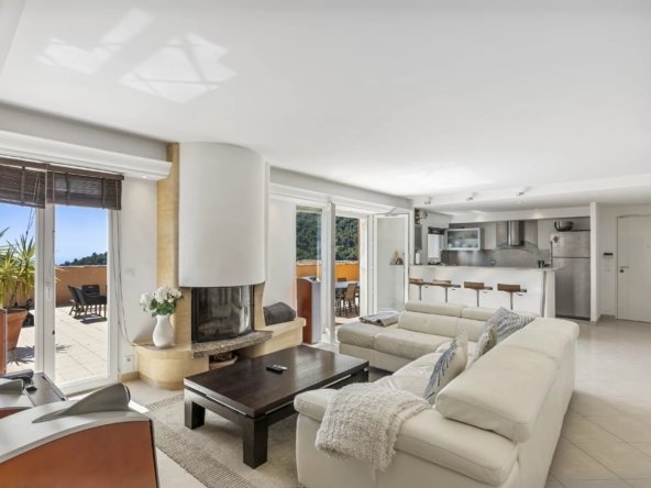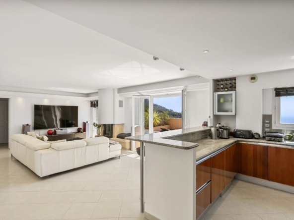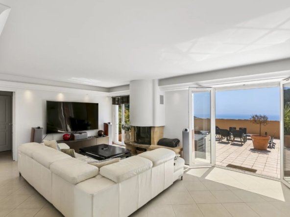 Ce toit-terrasse unique offre une vue spectaculaire à 180° sur la Méditerranée et le village médiéval d’Èze, dans un cadre privilégié alliant confort, espace et prestations haut de gamme.
