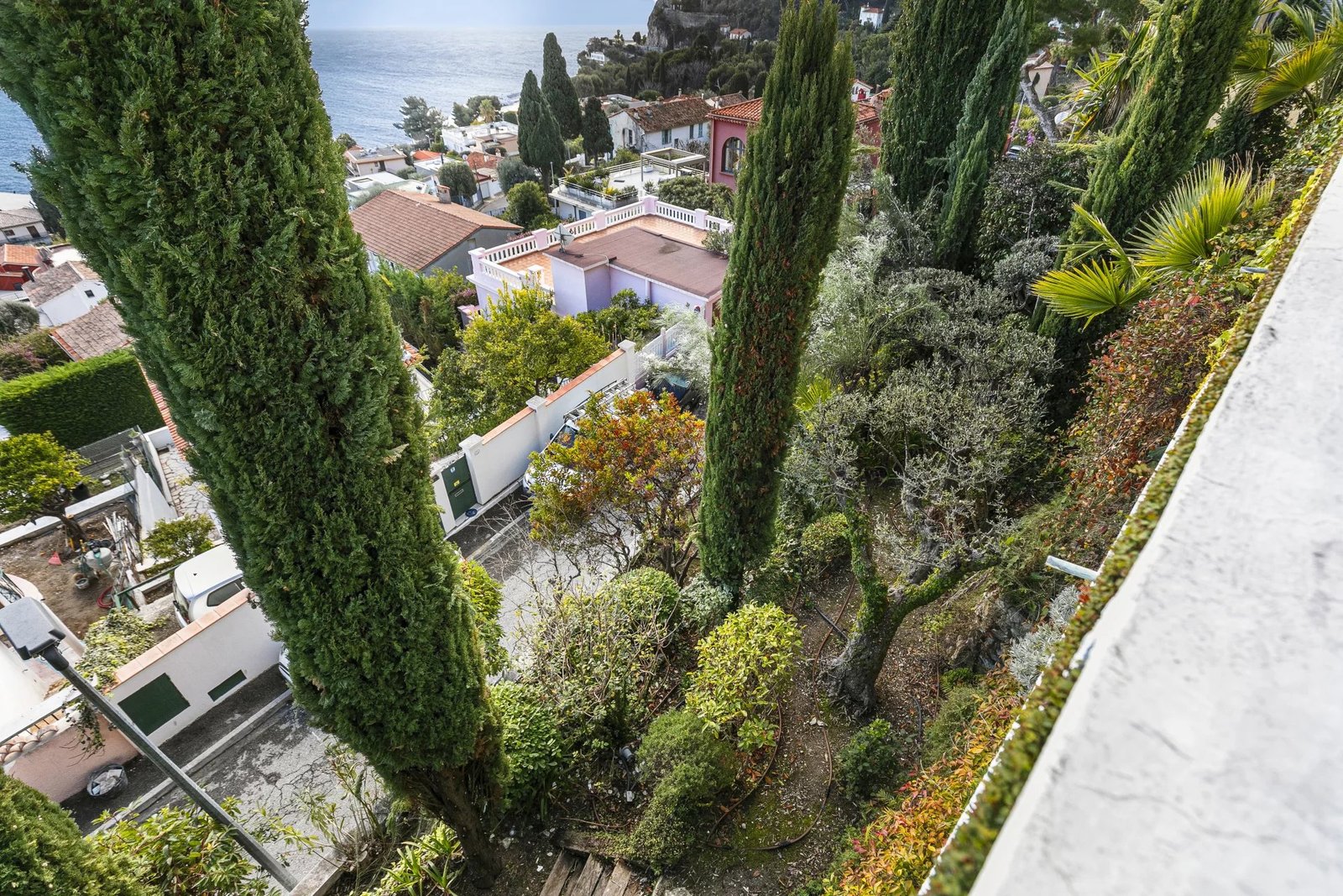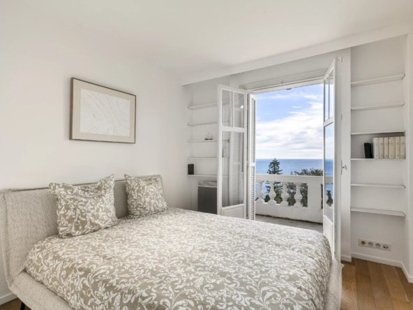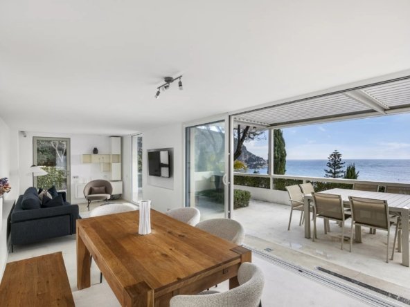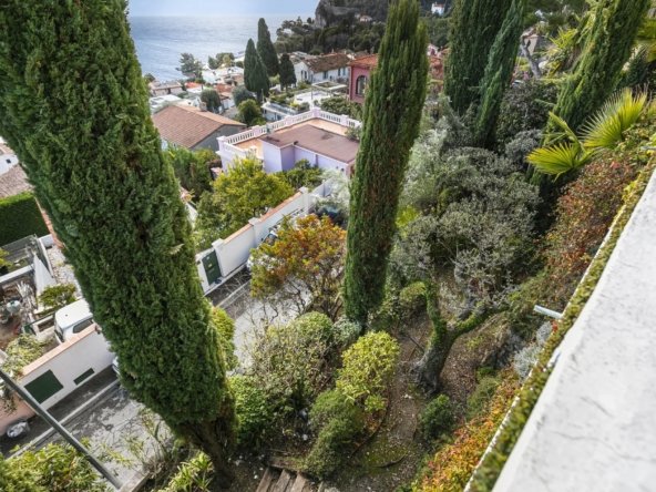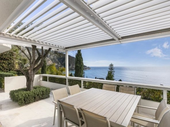 Implantée sur un terrain de 390 m², la propriété dispose de belles terrasses aménagées et d’une piscine avec vue dégagée sur la Méditerranée.