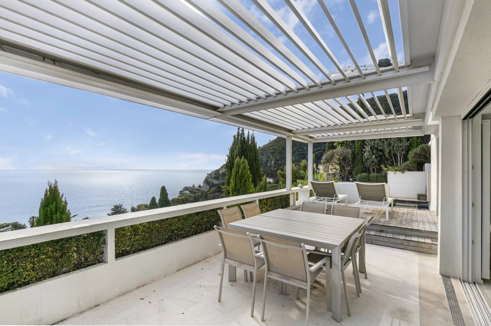 Dans un environnement privilégié, cette villa contemporaine de 150 m² bénéficie d’une vue panoramique exceptionnelle sur la mer et les montagnes, offrant un cadre de vie rare sur la Côte d’Azur.
