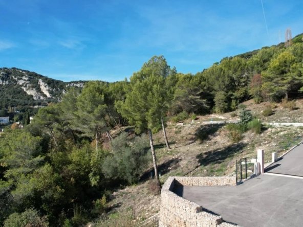 Construisez la villa de vos rêves sur la Côte d’Azur avec 4 chambres, 3 salle de bains, Cuisine ouverte sur Salon Salle à manger, Buanderie, Cellier, Garage et Piscine de plain pied, jardin.