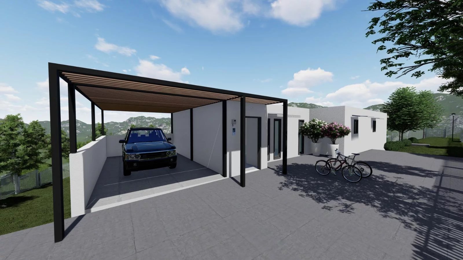 – Double portail électrique, visiophone, vidéosurveillance 4 caméras