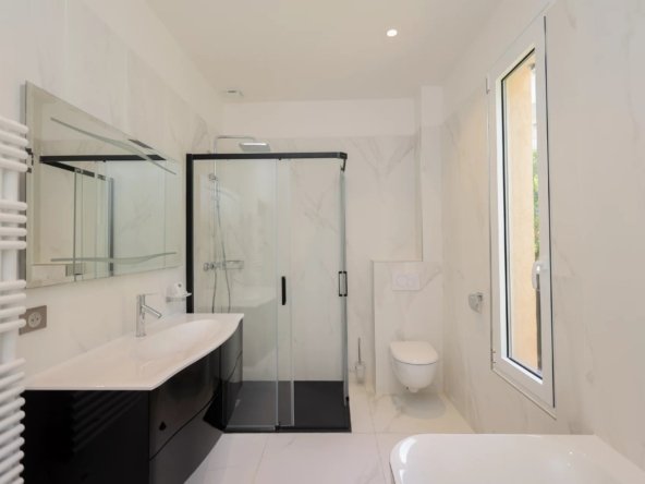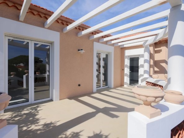 A proximité immédiate de toutes les commodités et des plages , magnifique propriété entièrement rénové de 260 m² sur un terrain arboré de 800 m2.