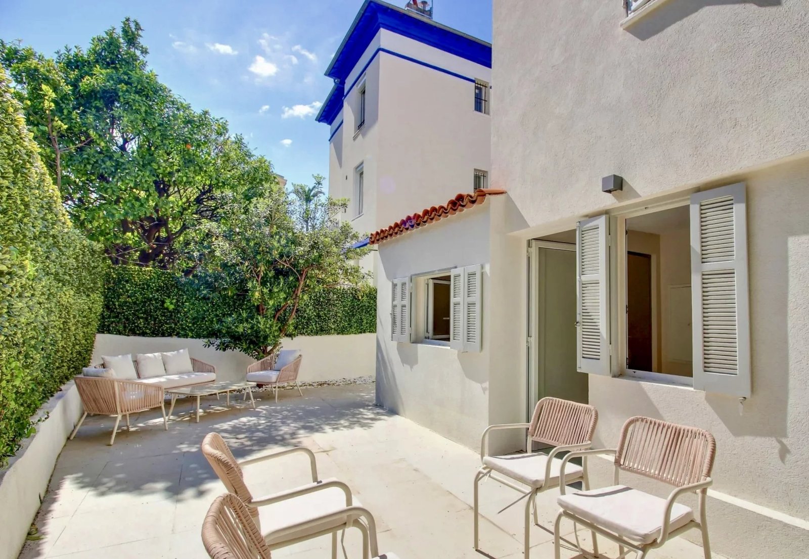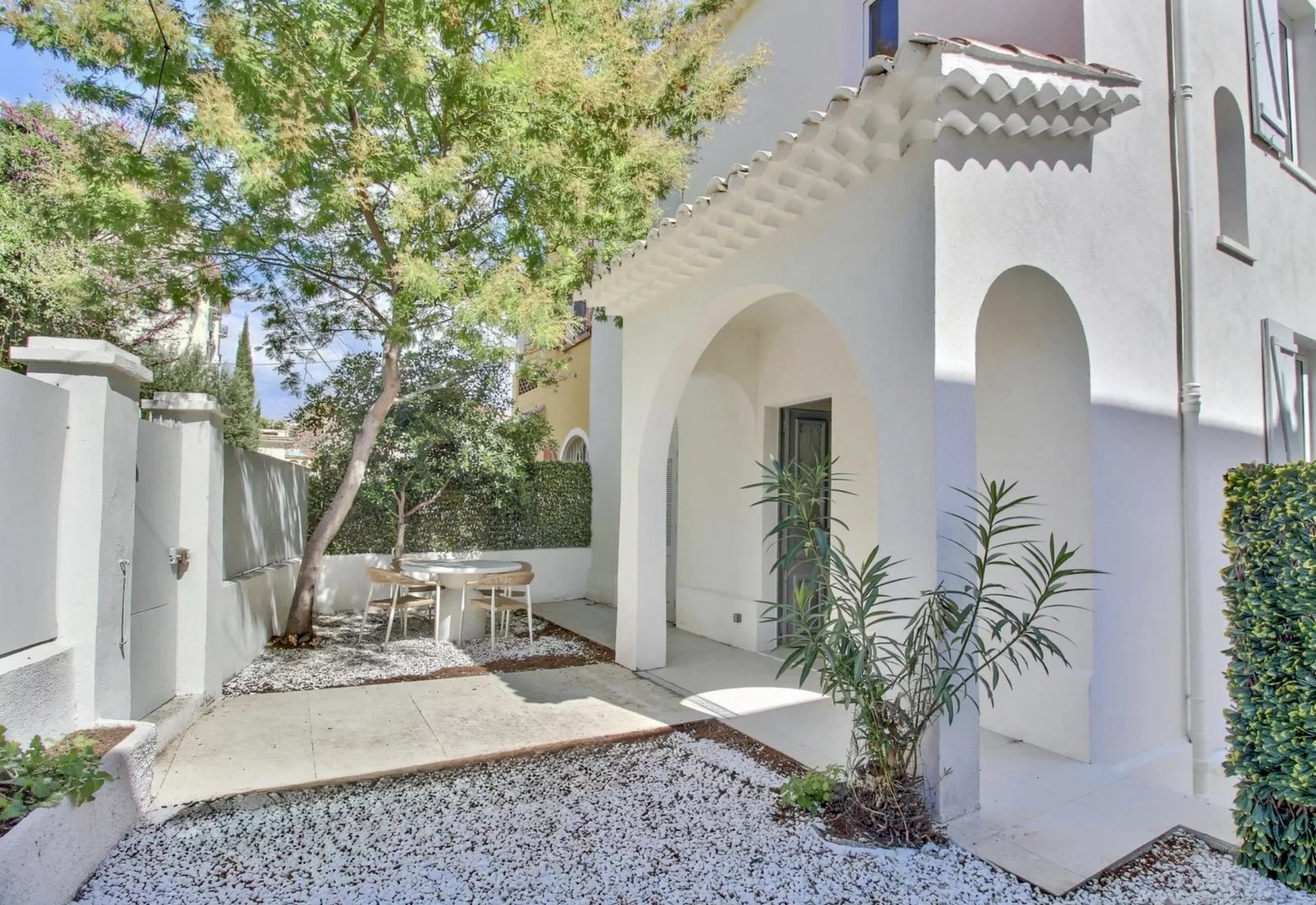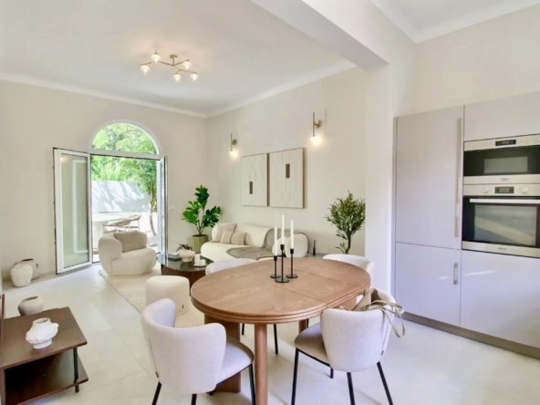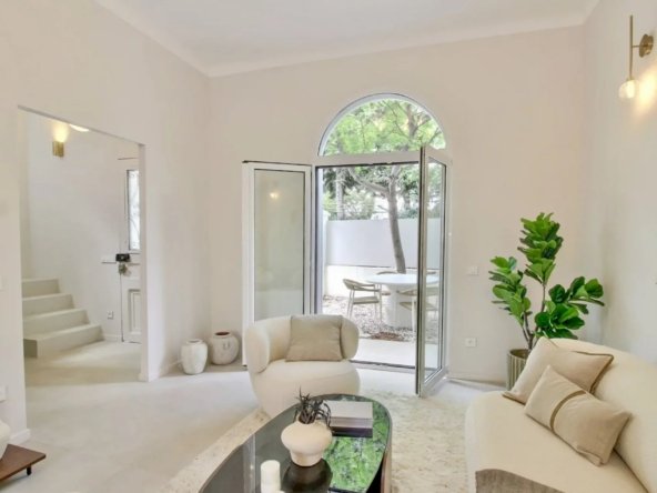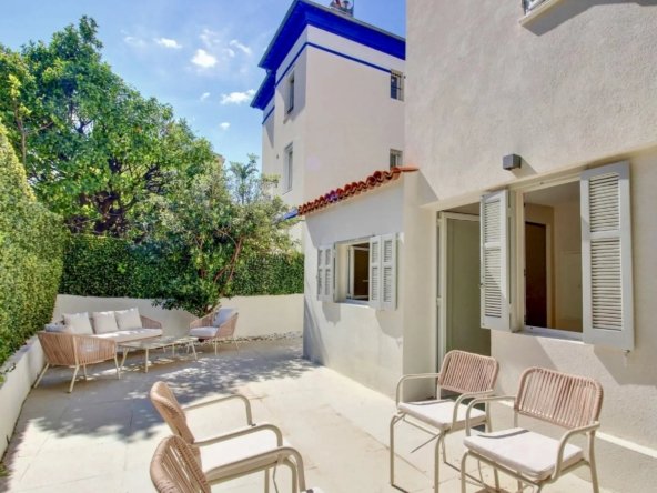 NICE CENTRE / BAUMETTES : Dans un quartier résidentiel, au calme d’une impasse verdoyante, à seulement 300 mètres de la mer, des commerces et du tramway, superbe maison de ville des années 30 de 135 m² habitables entièrement rénovée dans un style contemporain et édifiée sur une parcelle de 162 m² facile d’entretien.