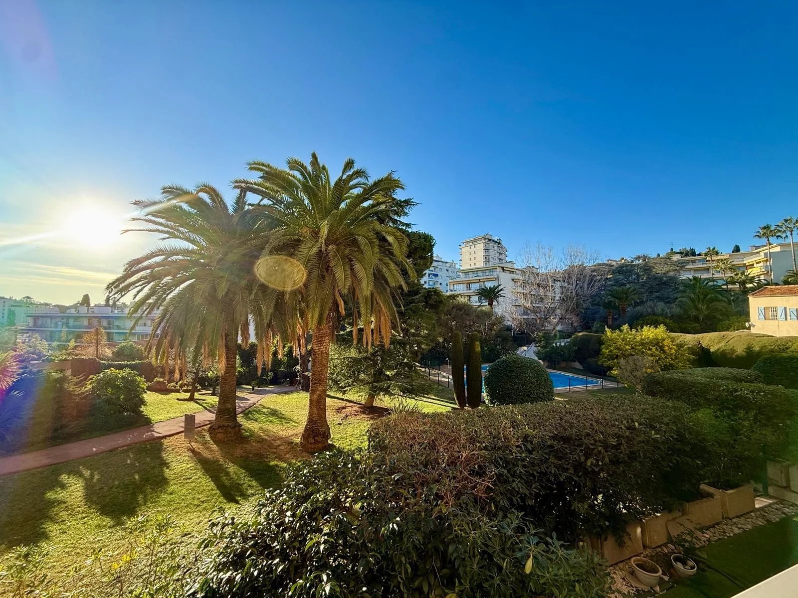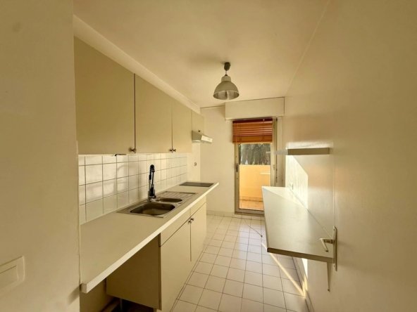 Le séjour, la cuisine et la chambre ouvrent tous les trois sur une belle terrasse exposée sud, offrant une vue dégagée sur les jardins et la piscine, sans vis-à-vis, idéale pour profiter pleinement de l’ensoleillement. L’appartement offre un beau potentiel de personnalisation.