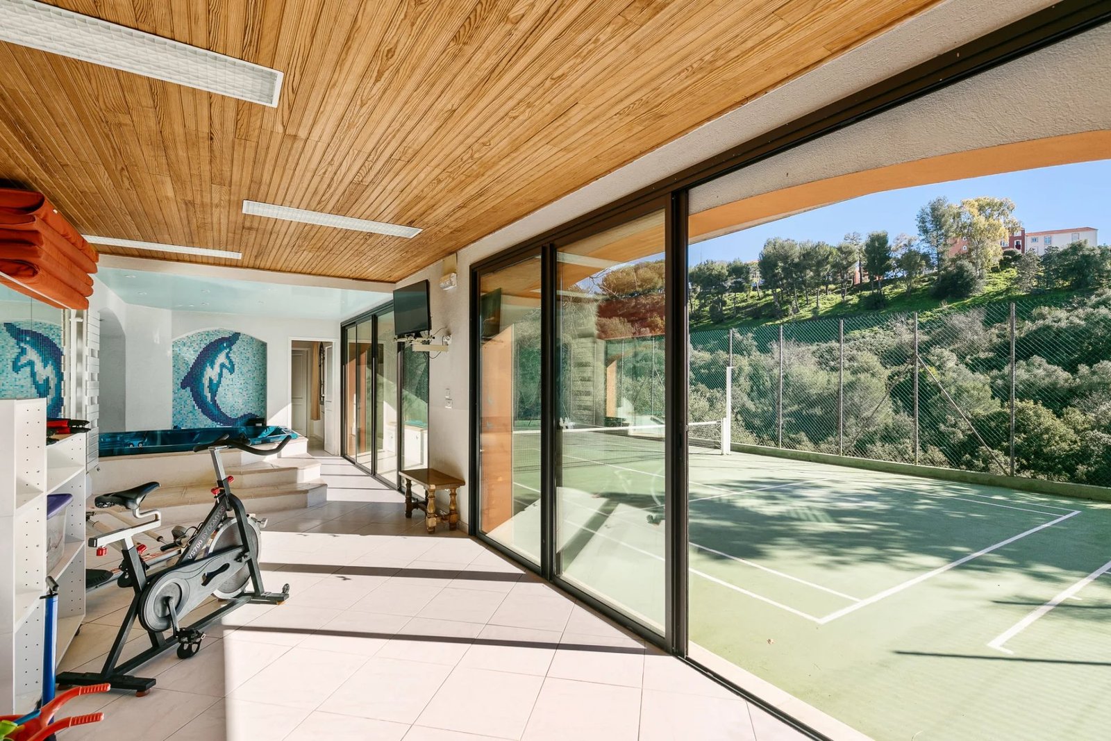 La propriété dispose également de nombreux équipements de qualité : piscine avec spa, court de tennis privé, salle de sport, salle de jeux et abris voitures.