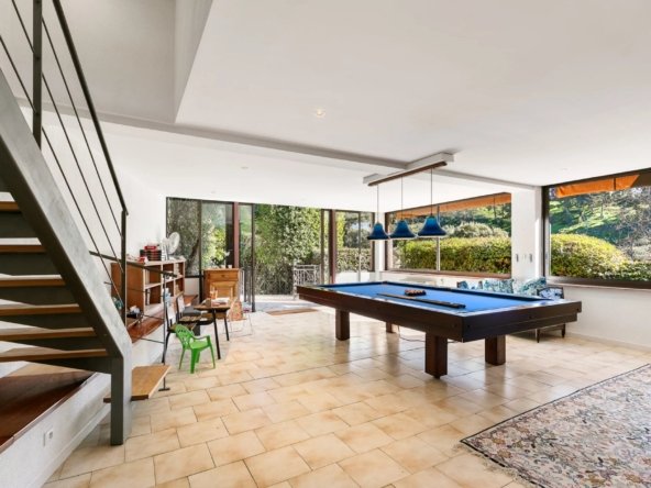 Située au sein d’un domaine privé, au bout d’une impasse, cette propriété de 469 m² bénéficie d’un environnement privilégié, au calme absolu et sans aucun vis-à-vis. Exposée plein sud, elle profite d’un ensoleillement optimal tout au long de la journée.