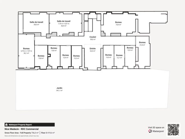 À Nice, en plein hyper-centre, se dresse un espace rare d’architecture et de lumière, véritable écrin pour les ambitions professionnelles. Traversant, élégant, ce lieu se déploie sur 788,7 m² utilisables, adjoints d’un jardin privatif de 341 m² en façade, respirant la quiétude en pleine ville.