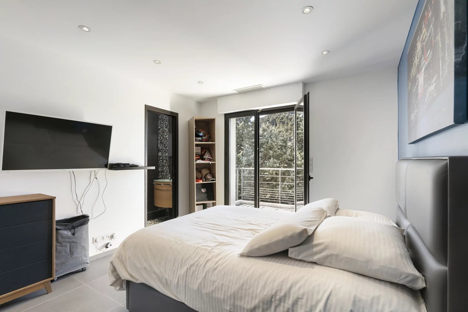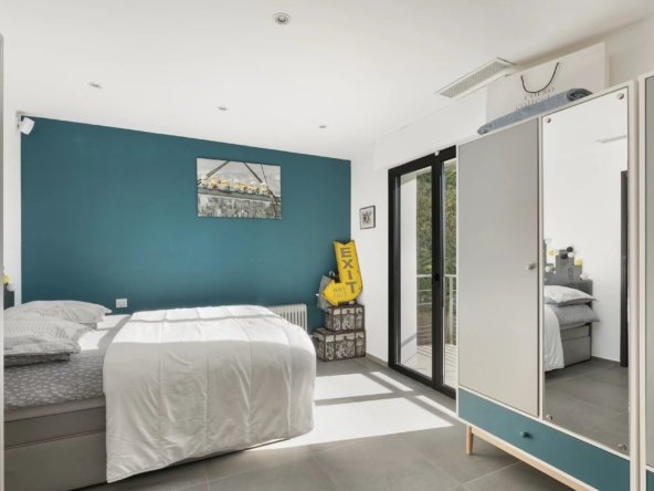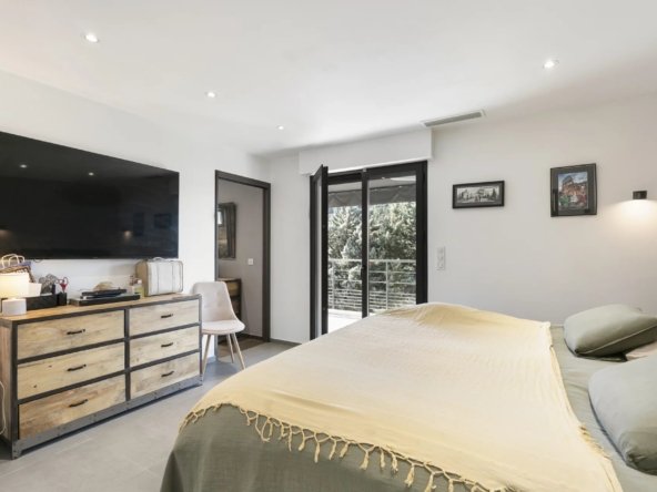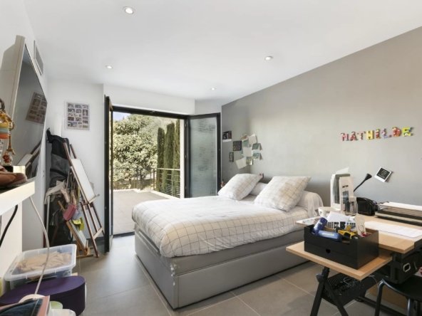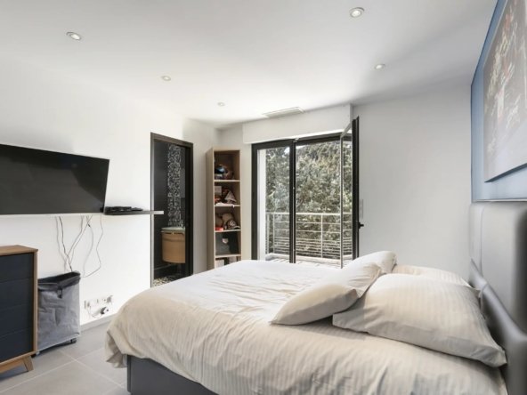 La partie nuit propose une suite parentale avec salle de bain et dressing, ainsi que trois chambres avec salles de bain privatives, dont deux avec dressing. Une pièce supplémentaire aménagée sous combles complète l’ensemble.