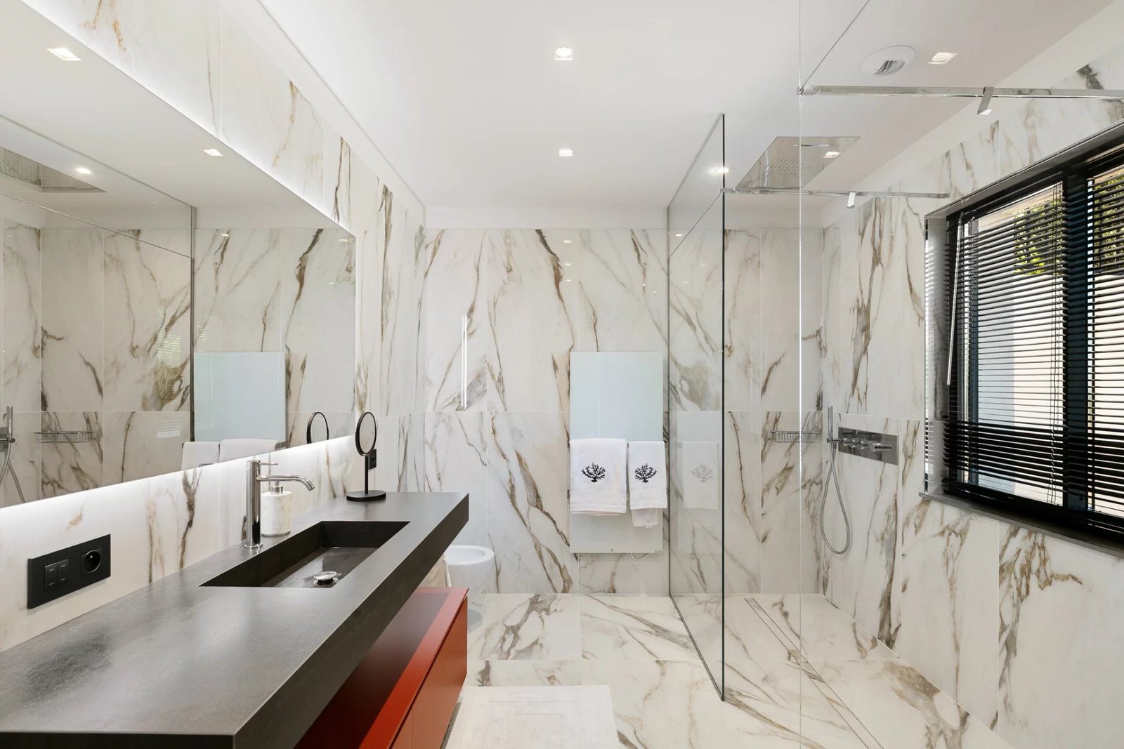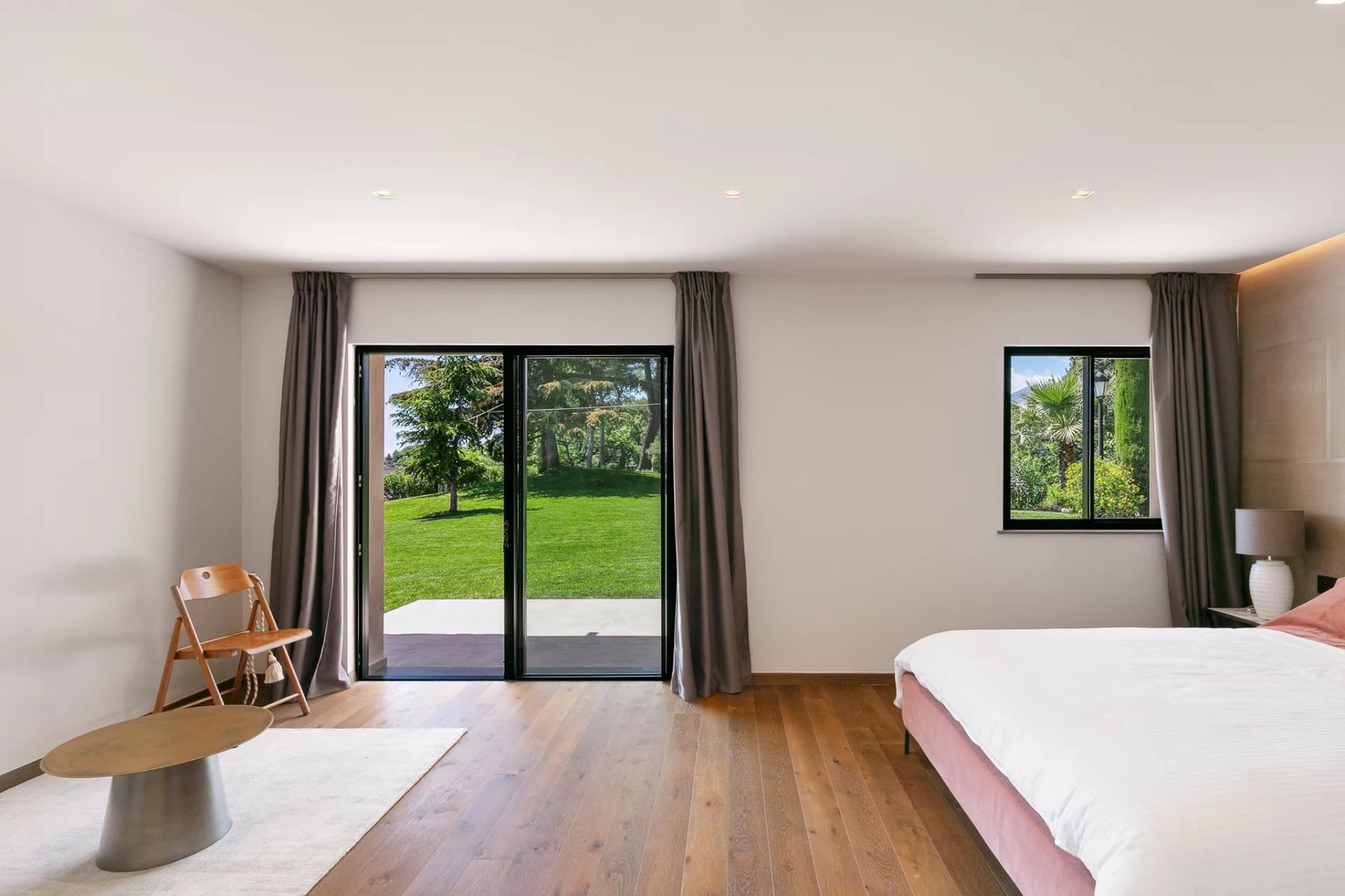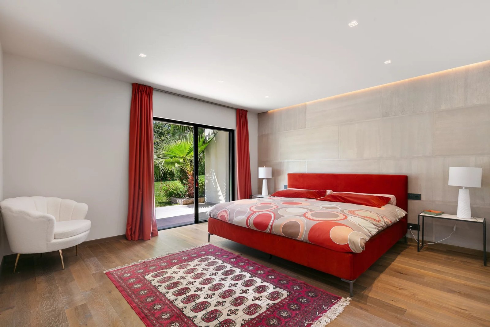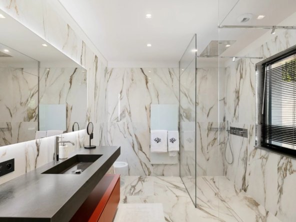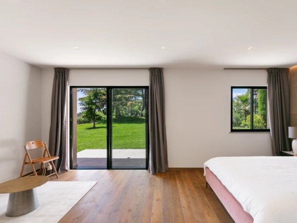 La partie nuit se compose de cinq suites, réparties entre les deux niveaux de la maison. Deux magnifiques chambres en rez-de-jardin bénéficient de terrasses privatives orientées à l’ouest, parfaites pour admirer les couchers de soleil. À l’étage, trois autres suites rivalisent de raffinement, entre finitions sur mesure et prestations haut de gamme.