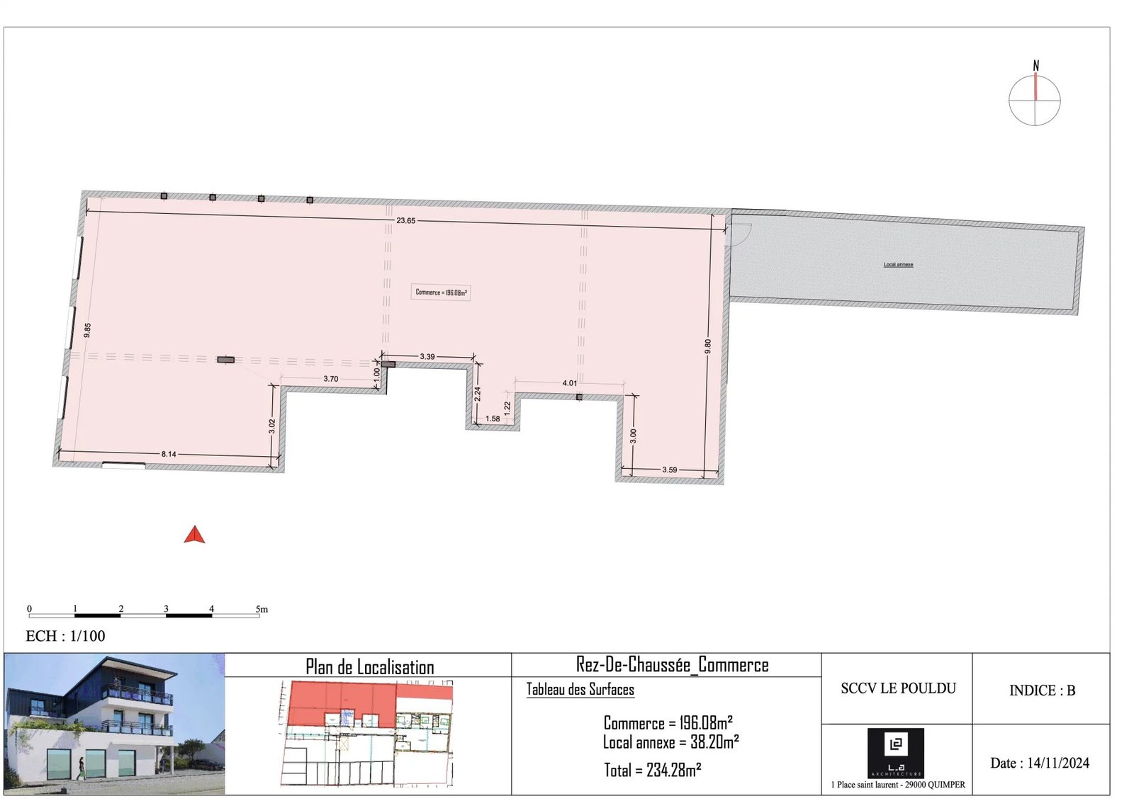 – 1 local commercial en rez-de-chaussée d’environ 196 m², adapté à une activité de proximité (commerce, restauration légère, services) ;