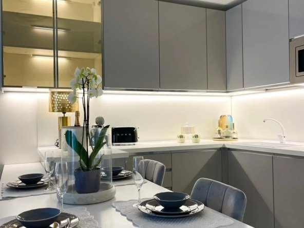 L’appartement, très lumineux du fait de ses grandes baies vitrées, offre une double exposition Nord/Sud et des prestations de grande qualité.