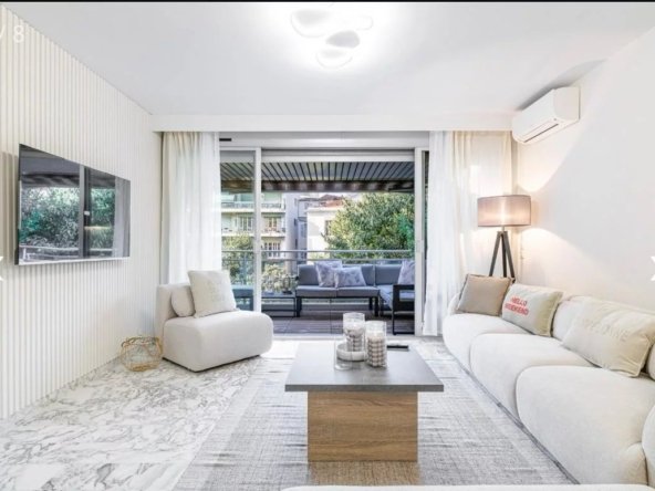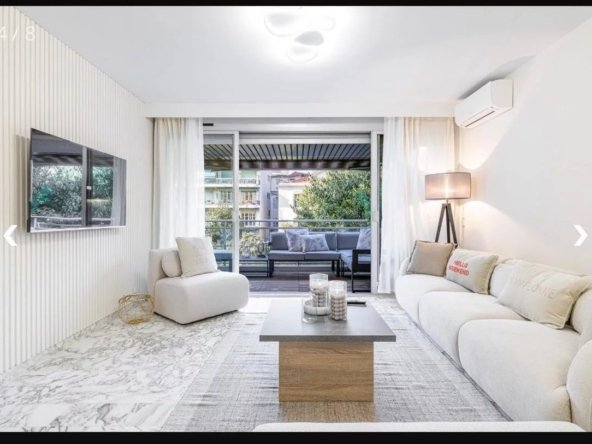 Dans un immeuble de grand standing avec ascenseur et gardien, Spacieux appartement de 104,5 m² entièrement rénové, climatisé et meublé.