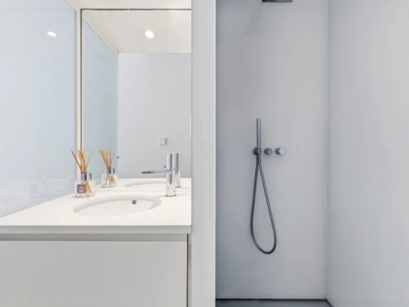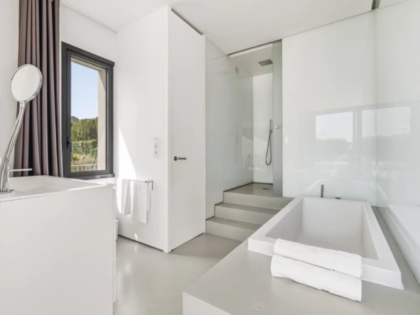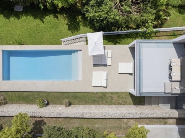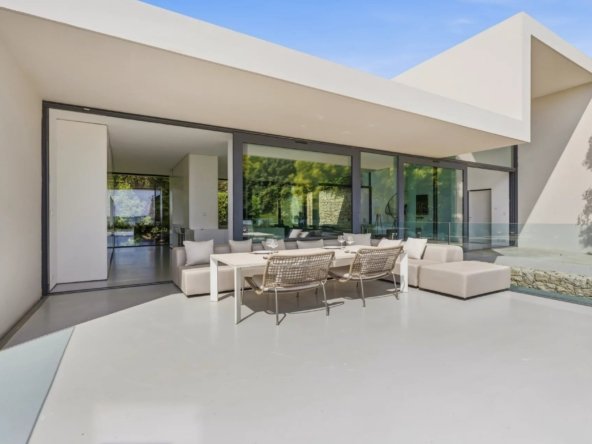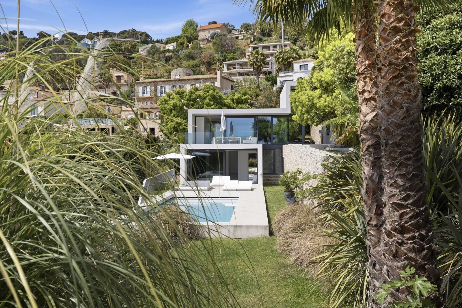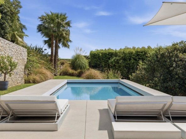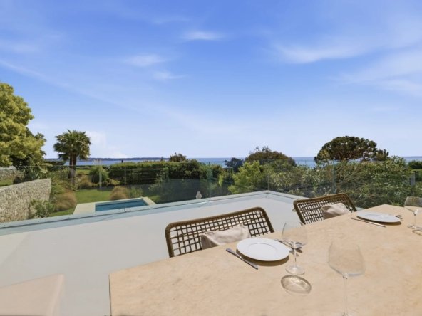 À l’extérieur, de larges terrasses et une piscine offrent un cadre de vie privilégié, idéal pour profiter pleinement du climat et des paysages de la Côte d’Azur.