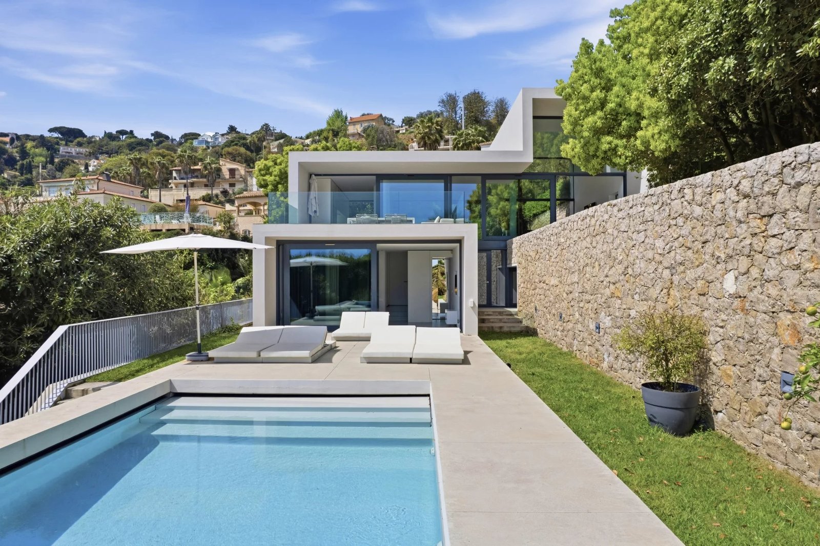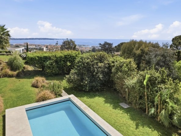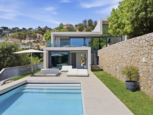 Située dans le secteur résidentiel très recherché de Cannes Eden, sur les hauteurs de Vallauris, cette villa contemporaine construite en 2012 bénéficie d’une vue mer panoramique exceptionnelle, s’étendant du Cap d’Antibes jusqu’aux Îles de Lérins.