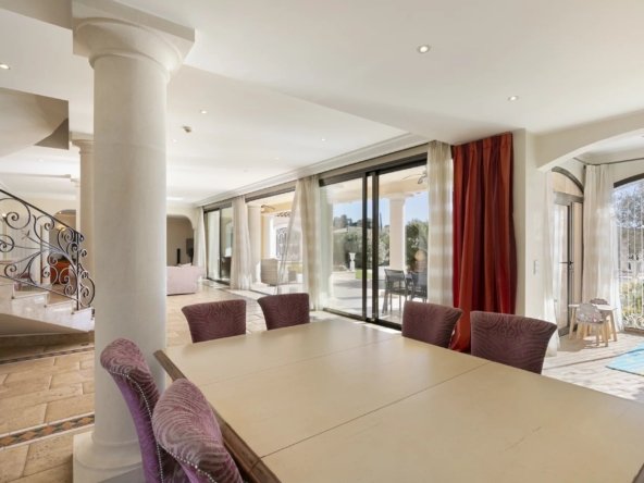 Sur un terrain plat de 2 600 m², elle offre 347 m² d’espaces de vie lumineux, 5 chambres dont 2 suites de maître avec salles de bains en marbre et jacuzzi.