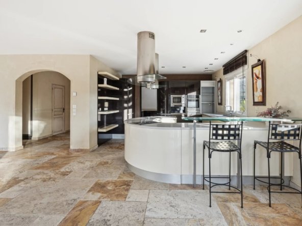 Située dans un domaine privé et sécurisé, au sud du charmant village prisé de Roquefort-les-Pins, cette somptueuse villa familiale de 430 m² bénéficie d’une position dominante et d’une vue panoramique imprenable sur la vallée, offrant un cadre de vie serein au plus proche de la nature, tout en restant à proximité du bord de mer et des plages de la Riviera.