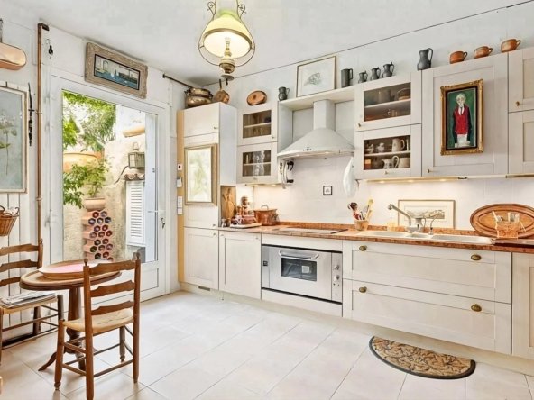 La propriété est répartie sur deux niveaux, offrant des volumes généreux et des prestations de qualité. Dès l’entrée, un grand hall de réception avec dressing vous invite à découvrir un double séjour baigné de lumière, offrant une vue panoramique sur la mer et la presque-île. La cuisine spacieuse et entièrement équipée bénéficie d’un accès direct à la terrasse, idéale pour profiter de l’extérieur.