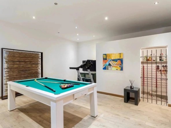 La propriété se distingue davantage avec une salle de jeux pour des moments de divertissement, une cave à vin pour des dégustations raffinées, un terrain de pétanque pour des rencontres amicales, et deux abris voiture pour un confort pratique au quotidien.