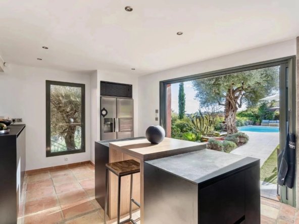 L’histoire commence par la vue panoramique majestueuse sur les Baou et les montagnes environnantes, créant un tableau vivant évoluant au fil des saisons. À l’intérieur, le confort est à l’honneur, avec une climatisation réversible totale et un chauffage au sol assurant une atmosphère idéale tout au long de l’année.