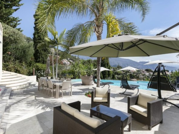 Située dans le quartier résidentiel prisé du Hameau, cette somptueuse villa entièrement rénovée offre un cadre de vie unique, au cœur d’un jardin paysager parfaitement entretenu avec une vaste piscine à débordement.