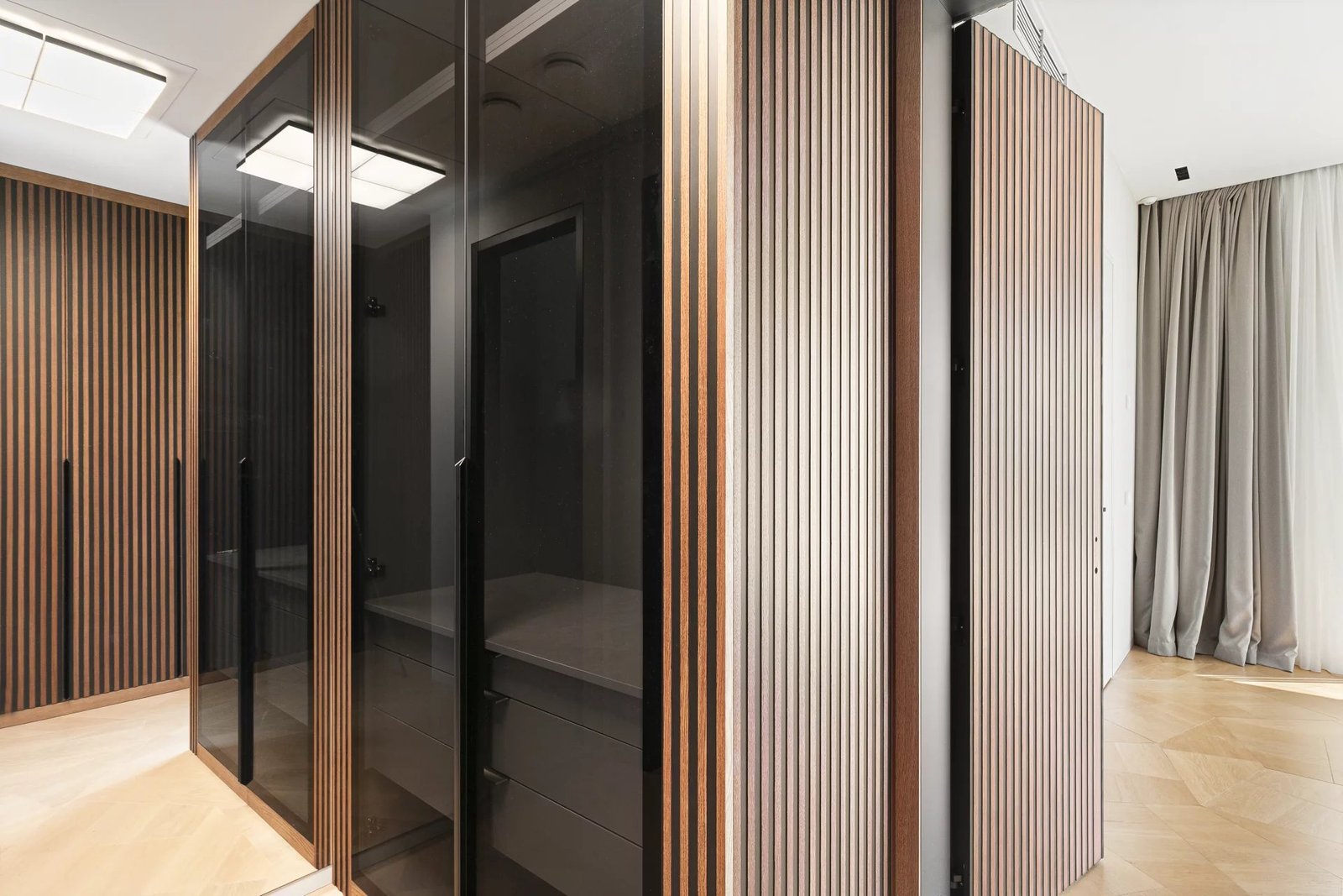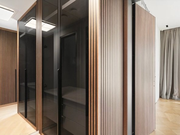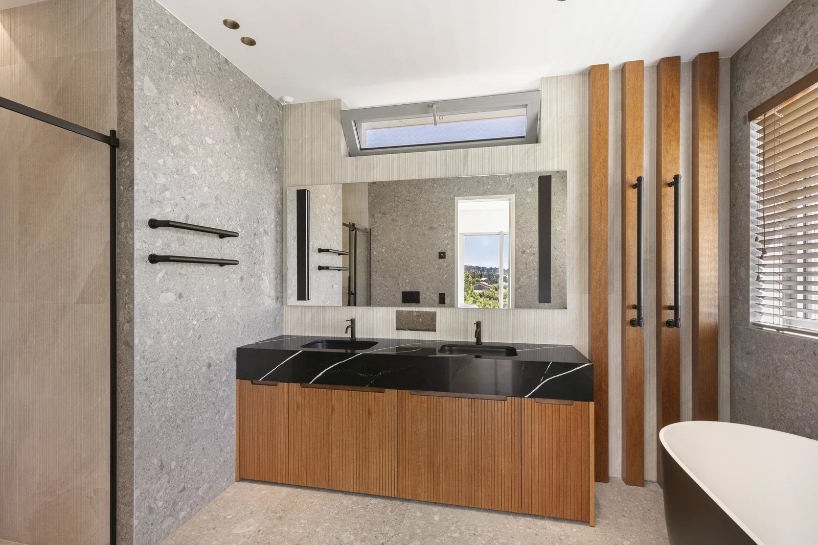 Au premier étage : l’espace parental avec deux chambres, dressings et une terrasse offrant une belle vue mer. Un espace plus privé, à l’écart.