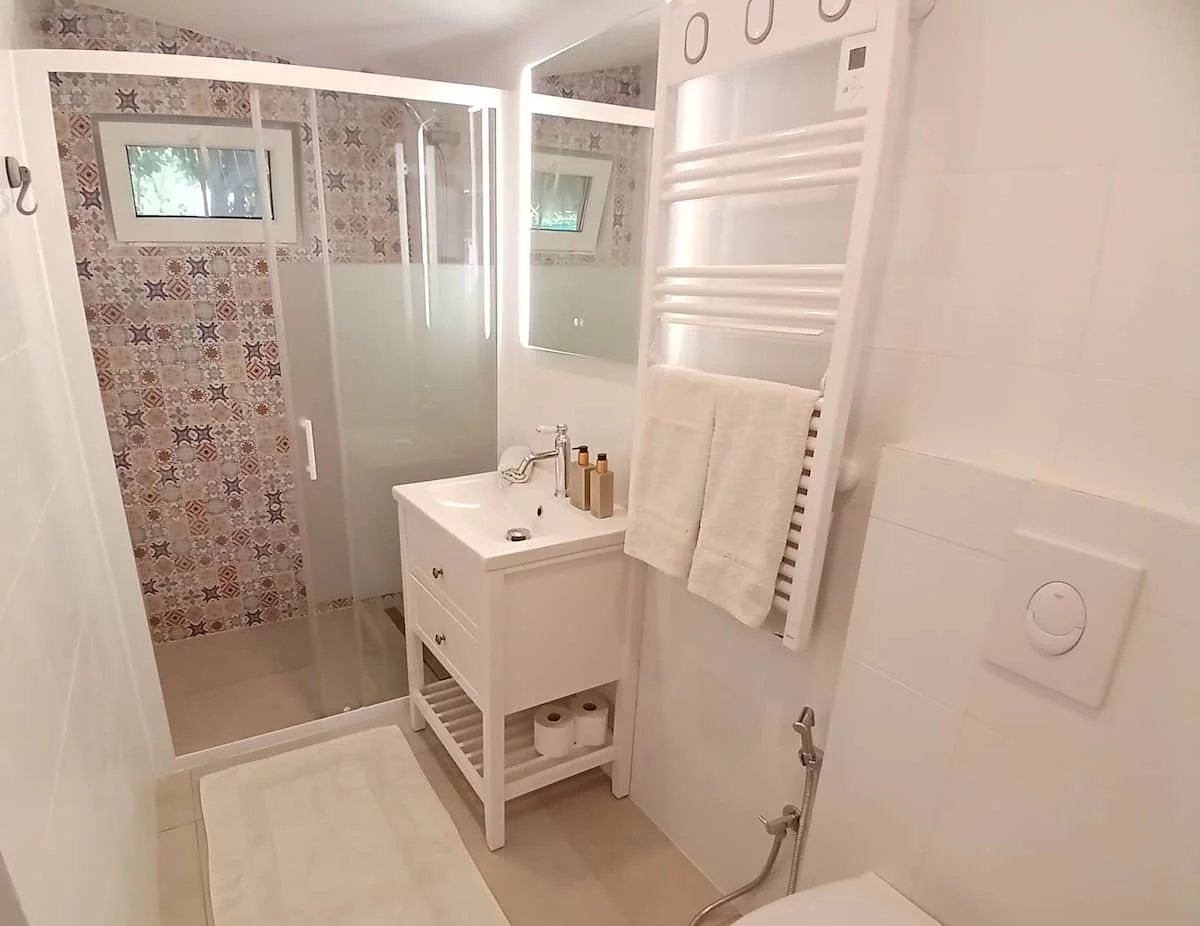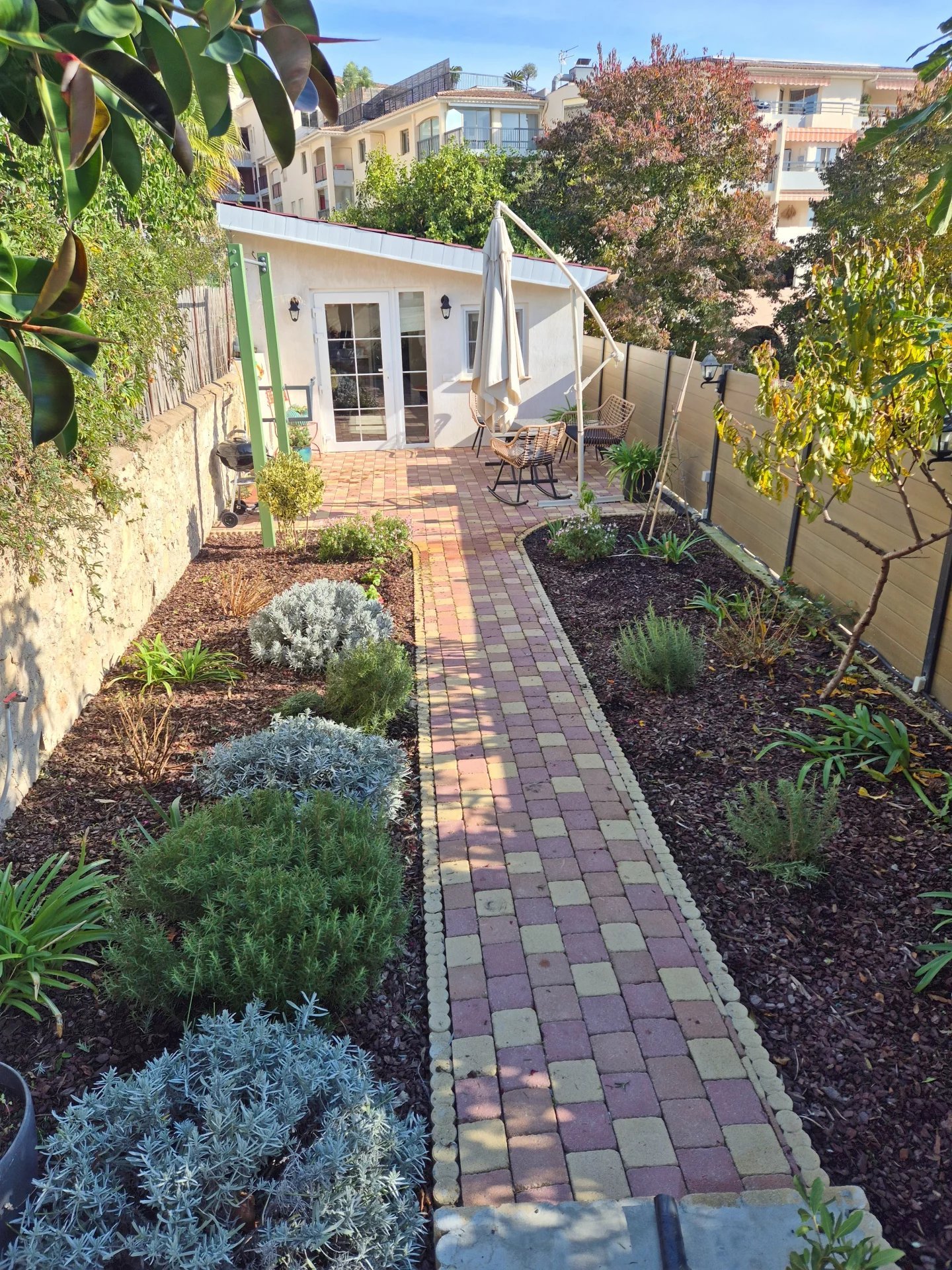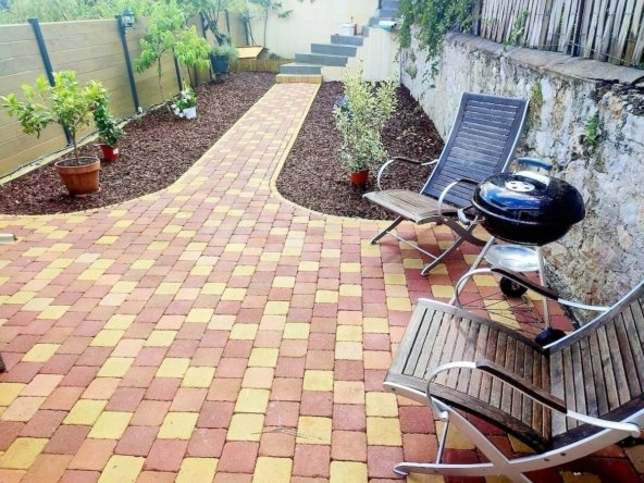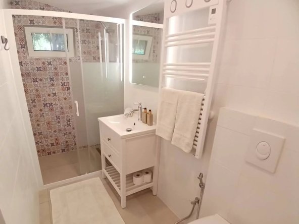 À l’extérieur, vous profiterez d’un jardin privatif, partiellement pavé, offrant un espace intimiste avec une vue dégagée et un bel aperçu mer — idéal pour vos moments de détente.
