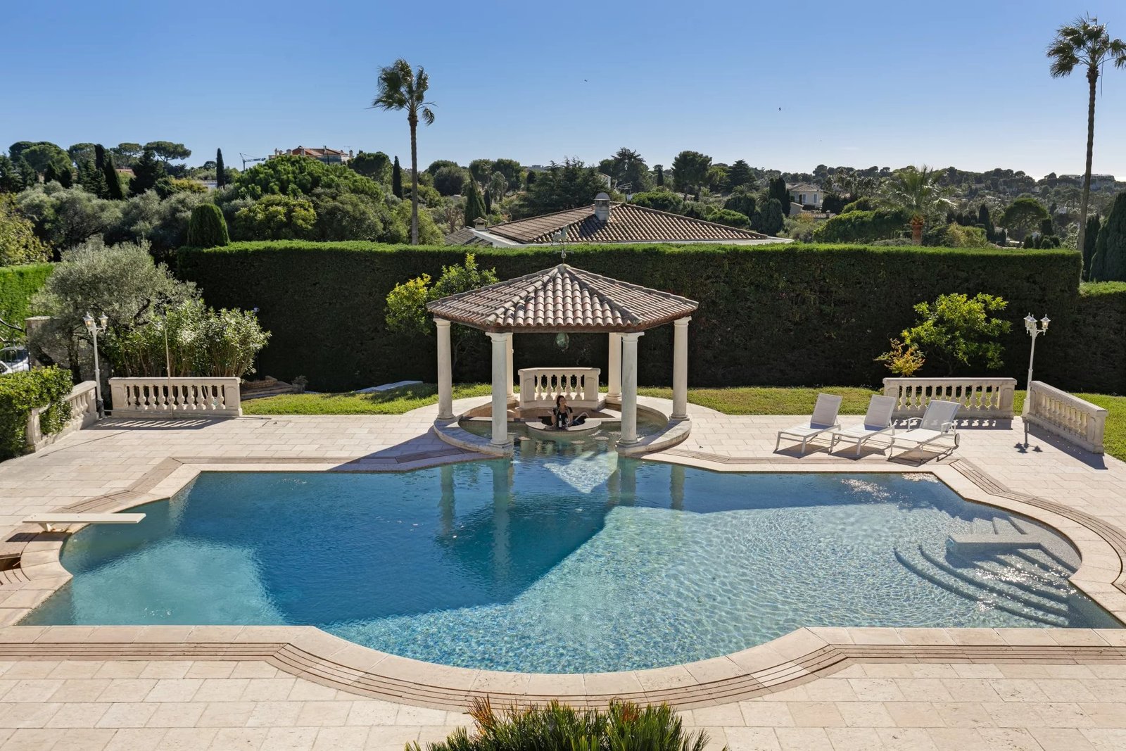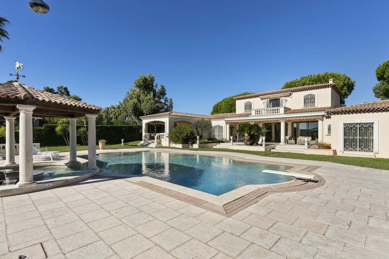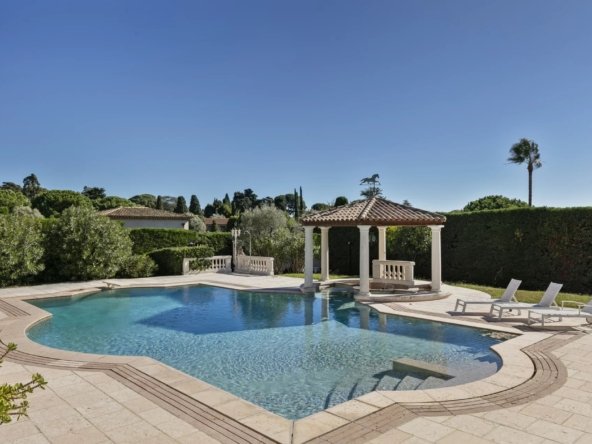 Située dans un domaine privé sur le versant ouest du Cap d’Antibes, cette villa d’architecture florentine incarne le charme et le prestige de la Cote d’Azur.