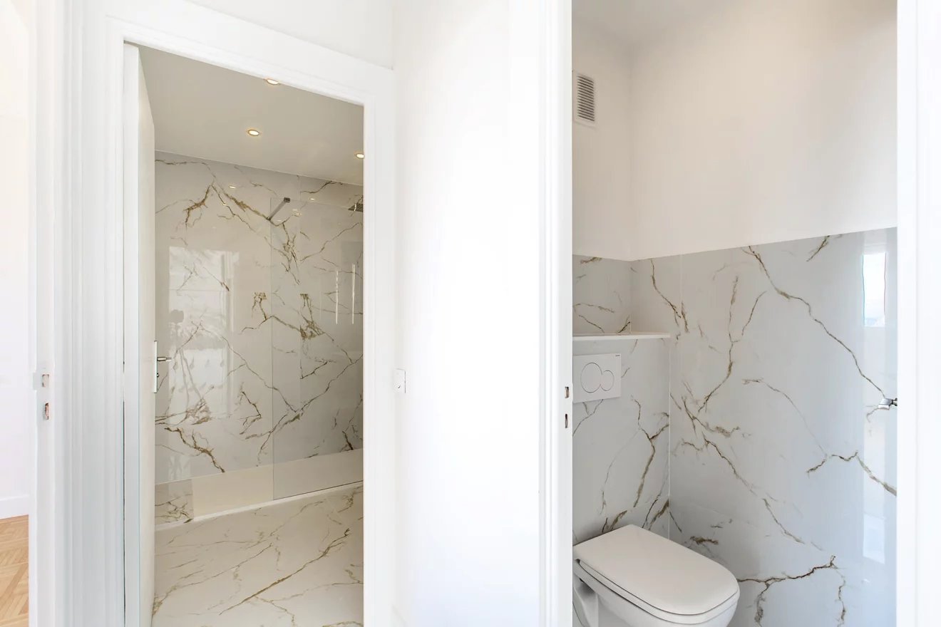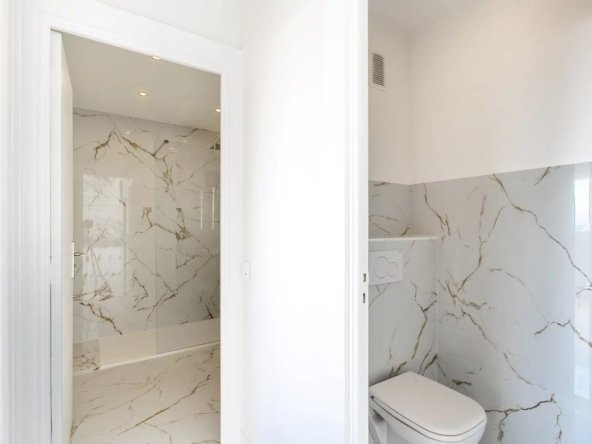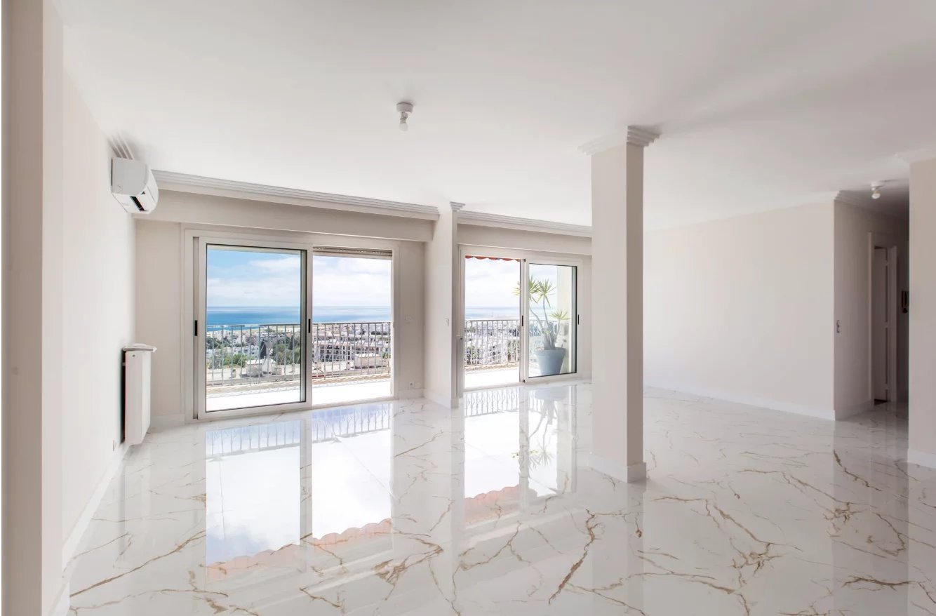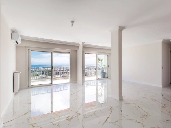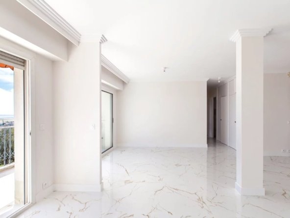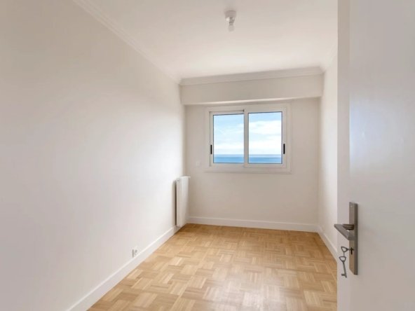 Entièrement rénové avec des prestations contemporaines et équipé de la climatisation, cet appartement traversant Sud/Nord bénéficie d’une luminosité optimale et d’un calme absolu. Il offre une vaste terrasse exposée plein Sud avec une vue mer panoramique exceptionnelle.